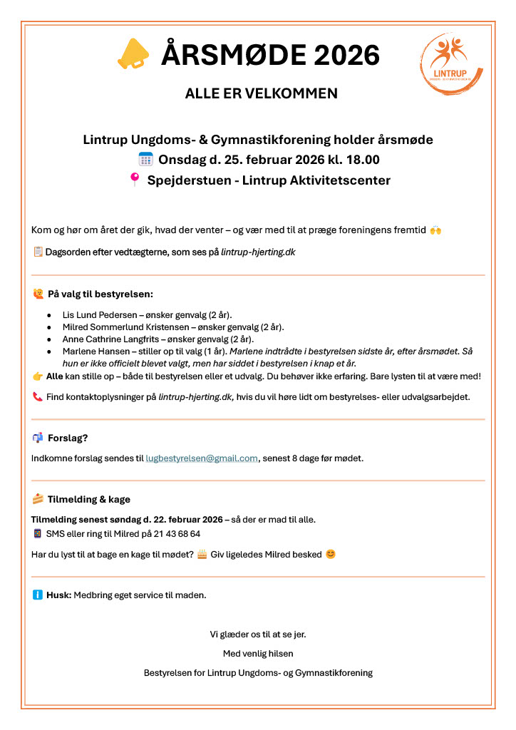 LUG ÅRSMØDE 2026, onsdag den 25.2.2026 kl. 18.00